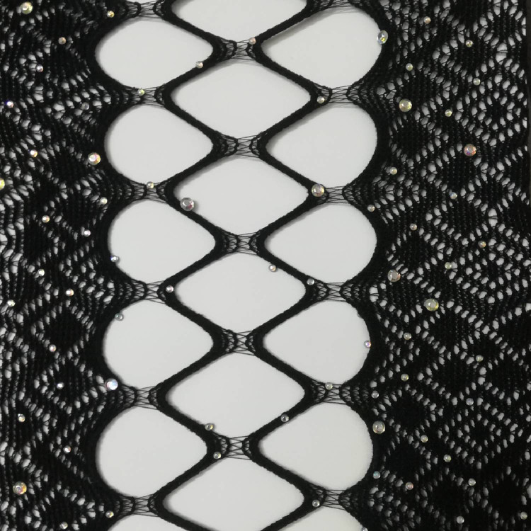جوراب شلواری توری نگین دار با مدل بافت درشت و بدن نما که از دو قسمت فاق جلو و عقب باز می باشد و از کشسانی خوبی برخوردار است. این مدل جوراب شلواری از آن دسته محصولاتی است که اکثرا خانم ها به عنوان جوراب فانتزی استفاده می کنند و می توان در مهمانی ها با لباس های مجلسی ست کرد و یا برای روابط زناشویی با لباس زیرهای فانتزی پوشید. فیشنت ها به اندازه جوراب های ساده پاهای شما را نمی پوشاند و تنوع و زیبایی خاصی به پاهایتان می دهد. بافت این مدل جوراب شلواری از نخ نرم و لطیف کار شده و بسیار زیباست.