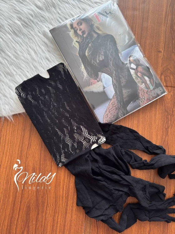 لباس خواب فول بادی پلنگی مشکی فاق باز کد 2155