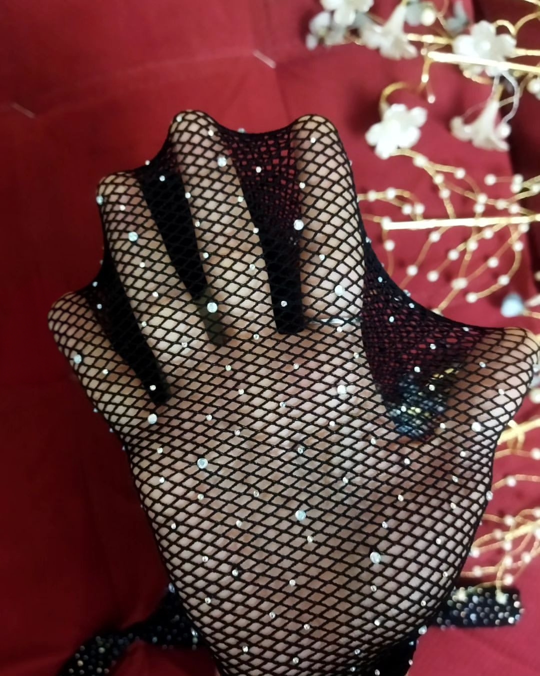 آستین دار و فاق باز پوشیده از نگین های درخشان